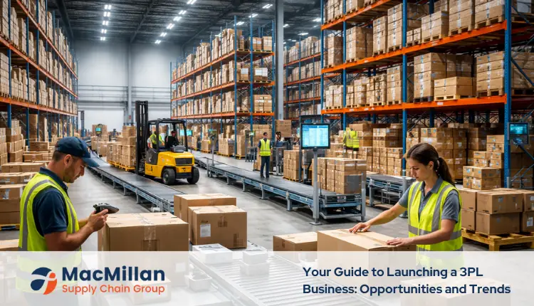 In the past two years, the logistics industry has experienced many transformative changes. These shifts are driven by technological advancements, changing customer behavior, and increased delivery traffic. The global 3PL industry is composed for substantial growth. Research indicate it will exceed $1.3 trillion by 2026 and touch $1.75 trillion by 2027, with an average annual growth rate (CAGR) of nearly 8%. Embarking on a 3PL warehousing business venture requires a thorough understanding of market trends, opportunities, and the competitive landscape. This blog will offer comprehensive insights into the core functions of a 3PL warehousing and essential steps to follow for starting a 3PL business and exploring its vast opportunities. 3 core functions when starting a 3PL The 3PL business model is revolving around inventory control and managing 3PL warehousing operations for other businesses. While the specific services and capabilities of a 3PL can vary, there are three core functions that most 3PLs offer. Let’s take a closer look at each of these fundamental operations. Inbound inventory operations: A 3PL assists customers in transferring and managing products from manufacturers or wholesalers to the 3PL’s warehouses. This involves scheduling inbound inventory and replenishment orders to ensure customers maintain appropriate stock levels. Some 3PL warehousing services solely receive inventory, while others also help create orders and manage inbound inventory. At MacMillan SCG, we provide data and support to help customers restock at optimal times, reducing the risk of stockouts and revenue loss. Our inbound teams swiftly offload goods and scan them into inventory software, or WMS systems giving you real-time visibility of available items at each location (read more about choosing the right WMS for your business) 3PL warehousing and storage: One of the most important functions 3PL warehousing includes is storing your inventory properly. Top-tier 3PLs use scanning and automation tools to maintain order accurate, real-time inventory counts to be accessible 24/7. MacMillan as a top tier 3PL warehousing provider specializes in space accommodation and handling product specifications (e.g., hazardous materials, temperature-controlled goods). Additionally, 3PLs work diligently to minimize shrinkage, optimizing both their customers and their own operations. Order fulfillment: The final component of standard 3PL warehousing service is order fulfillment. This involves picking products from stored inventory, packing them according to customized orders, and shipping these packages to the end customer. Effective order fulfillment relies on the 3PL’s strong relationships with carriers and local partners to ensure efficient distribution. To minimize costs, it is important to work with multiple carriers and maintain multiple locations. Ensuring order accuracy is a critical responsibility of the 3PL. At MacMillan, we believe in taking accountability for our services, which is why we cover the cost of any damaged orders. A fulfillment network such as Ship Bob with its most noticeable 2-Day Express shipping program which allows you to meet the high expectations set by Amazon, significantly reducing shipping costs for customers and speeds up last-mile delivery. Business Opportunity in starting a 3PL Business Starting a 3PL business offers significant benefits, the ease of online shopping, heightened by the pandemic, led to an 11.16% growth in ecommerce in 2023. This surge is driving global demand for 3PL warehousing services, as customers increasingly expect timely and accurate deliveries. Many smaller merchants, unable to manage their own logistics operations, are outsourcing their distribution and fulfillment operations to 3PL warehousing partners to remain competitive. In response, 3PL companies are making substantial changes in supply chain management, focusing on reducing delivery costs, cutting-edge technologies, and enhancing overall responsiveness. These new adaptations are key metrics for growth in the 3PL industry. Steps for starting a 3PL business Before starting a 3PL business, there are several factors to consider, here are the steps a business must follow: PART 1- EVALUATION AND SETUP Deciding 3PL type and specialization: To start a 3PL business, it’s crucial to understand industry verticals and decide on a specialization. A 3PL can focus on a specific product category, such as retail, food, apparel, or large appliances, or they can operate as an ecommerce fulfillment provider. For instance, a 3PL operating in electronics fulfillment can also handle apparel due to the similar processes involved. The chosen product specialization will form the warehouse layout, as the storage needs for apparel differs from those for appliances. This specialization also determines the appropriate pallet configurations. Additionally, 3PLs must select relevant sales channels that align with their specialized product class to maximize efficiency and market reach. Selecting the Location: The geographic location of the warehouse is a critical consideration for a 3PL owner. When selecting a warehouse location, the 3PL must prioritize proximity to where products are stored and ensure it is centrally located to 3PL warehousing activities. This strategic positioning helps the 3PL achieve fulfillment and reduce shipping costs by minimizing the distance for receiving and dispatching products. Setting up 3PL warehousing space: Each 3PL warehouse has its storage capacity tailored to the specific product category it serves. However, there are fundamental principles that 3PL warehouse managers should consider for effective layout design: For inventory movement, each warehouse should include several key areas: Reserve storage area Carton and product picking area Packing and dispatch area Cross-dock area Empty pallet and packaging area MHE charging area Shipping PART-2: TECHNOLOGICAL OPERATIONS Modern warehouse management s